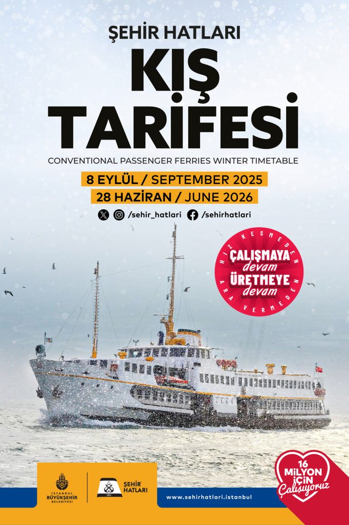 28 Haziran 2026’ya kadar sürecek kış döneminde günde 850 sefer yapılacak. Şehir Hatları’nın bu yıl yaz tarifesi kapsamında hayata geçirdiği Çengelköy-Kabataş hattına Beşiktaş uğraması düzenlemesi kış tarifesi boyunca da devam edecek. Ayrıca, Maltepe-Adalar hattındaki sefer sayısı geçen yıl 24 iken bu yıl 30’a yükseltildi. 12 Ağustos 2024’te hizmete açılan Tuzla-Pendik-Adalar hattında da tüm kış boyunca seferler sürecek.